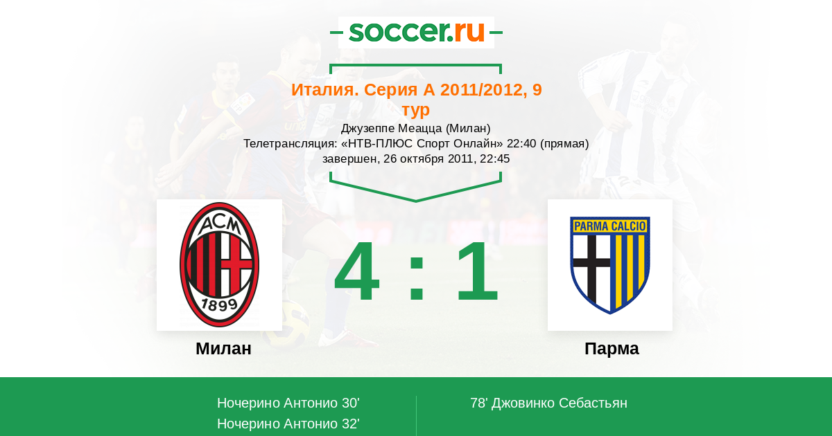 73' (3:0) Ибрагимович Златан (11) (Кассано Антонио (99))