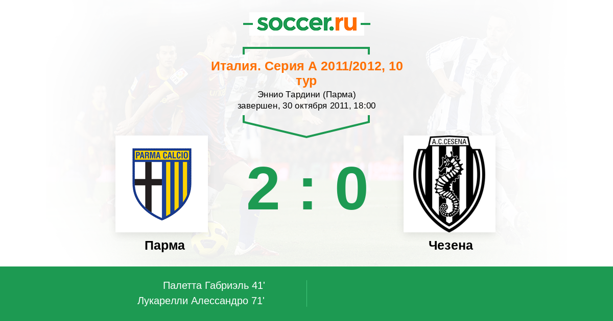 Протокол матча Парма против Чезена