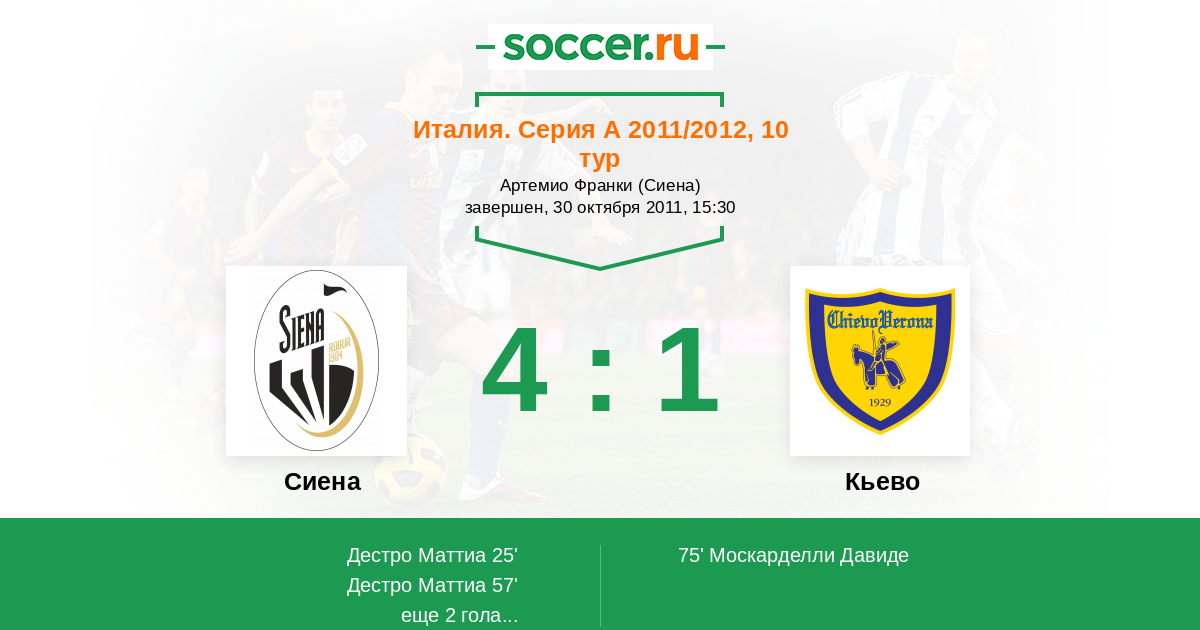 Протокол матча Сиена против Кьево