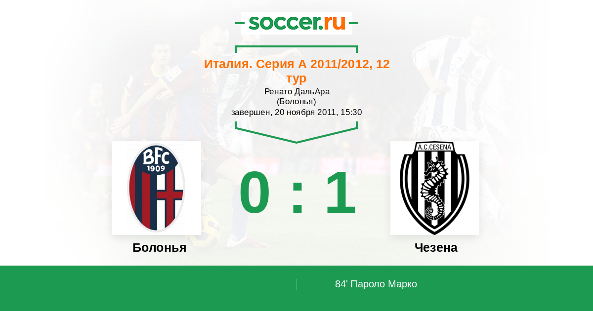 Протокол матча Болонья против Чезена