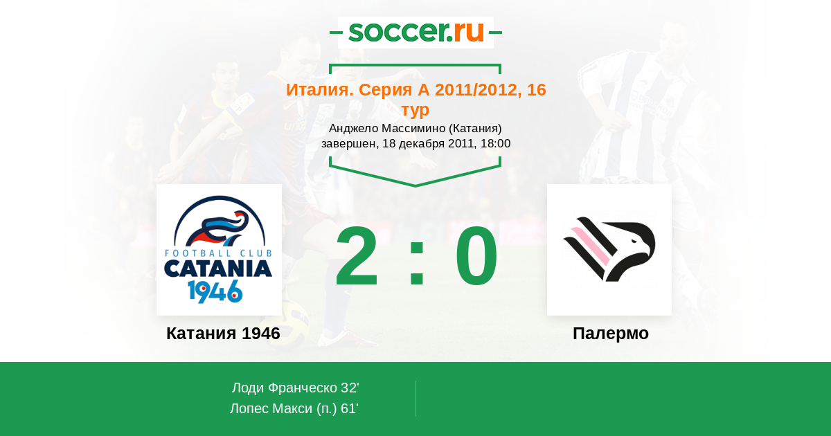 Протокол матча Катания 1946 против Палермо