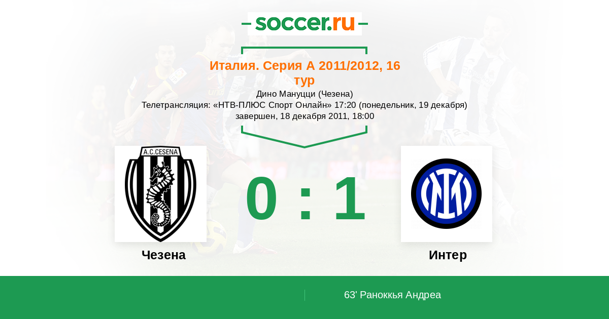 63' (0:1) Раноккья Андреа (23) (Майкон (13))