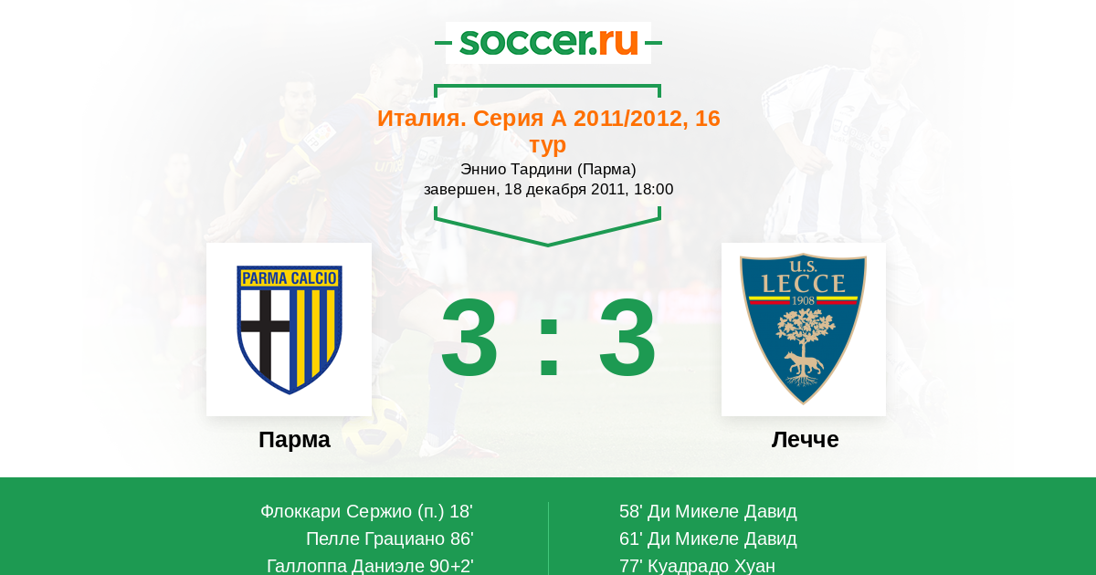Протокол матча Парма против Лечче