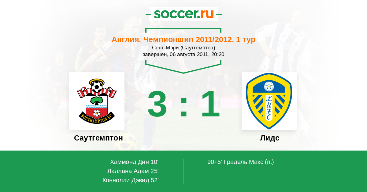 Протокол матча Саутгемптон против Лидс