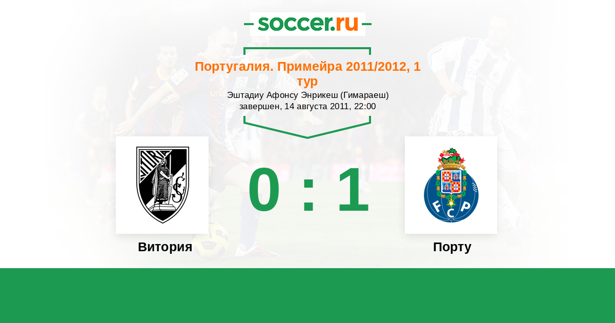 Португалия. Суперкубок 08.08.2011 Порту Логотип футбольный клуб Порту 2:1 Логотип футбольный клуб Витория (Гимараеш) Витория