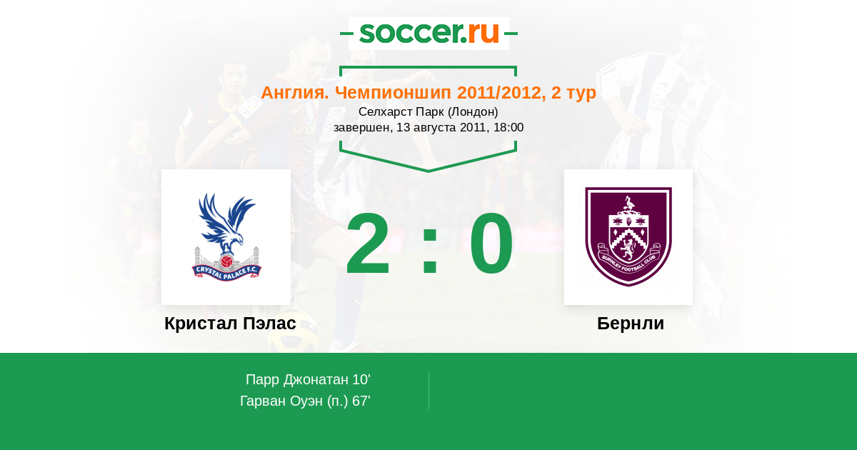 Протокол матча Кристал Пэлас против Бернли