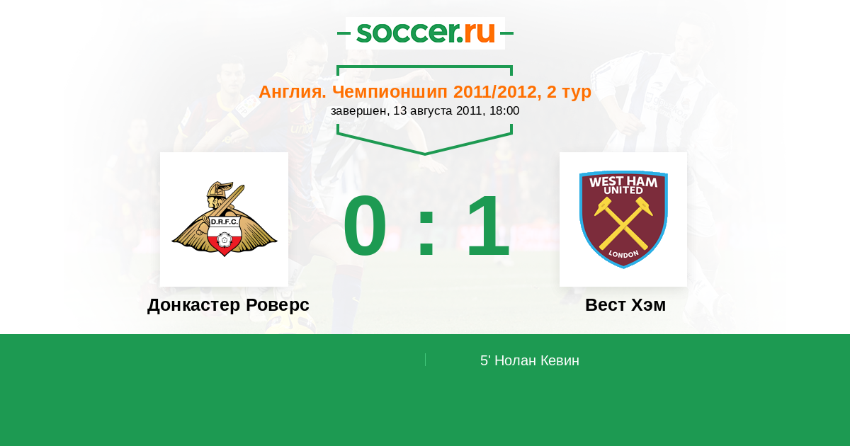 Протокол матча Донкастер Роверс против Вест Хэм
