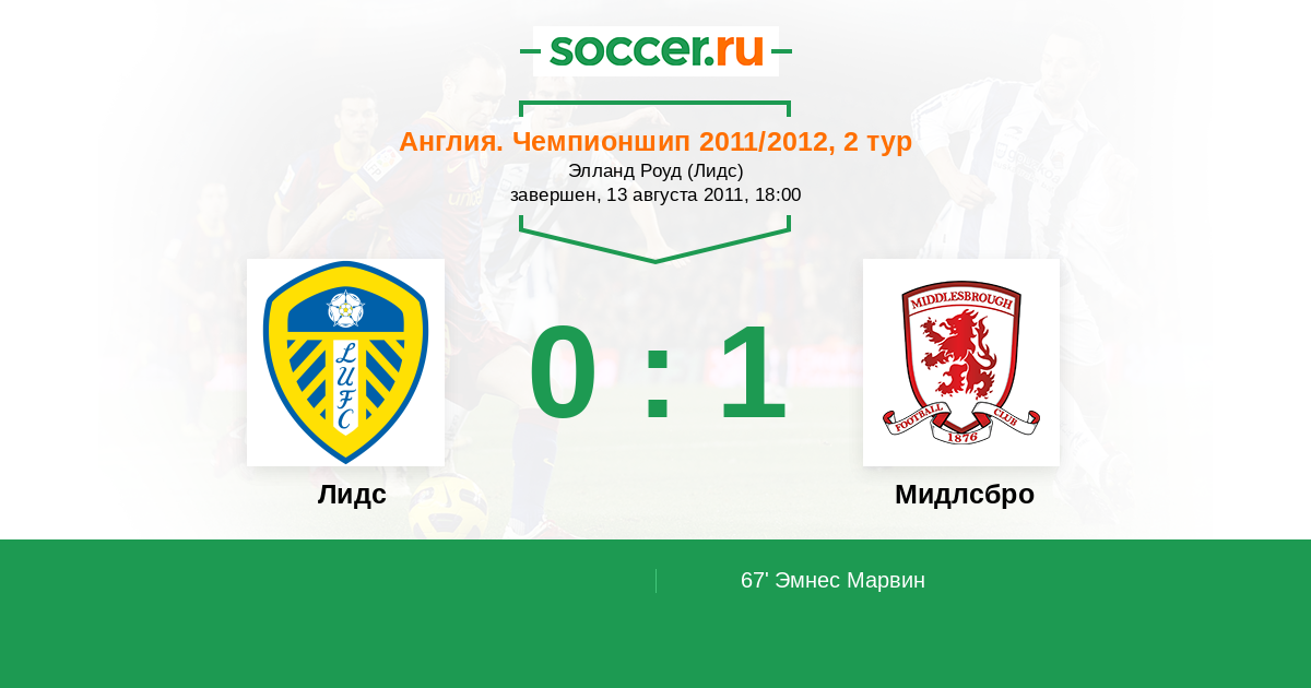 Протокол матча Лидс против Мидлсбро