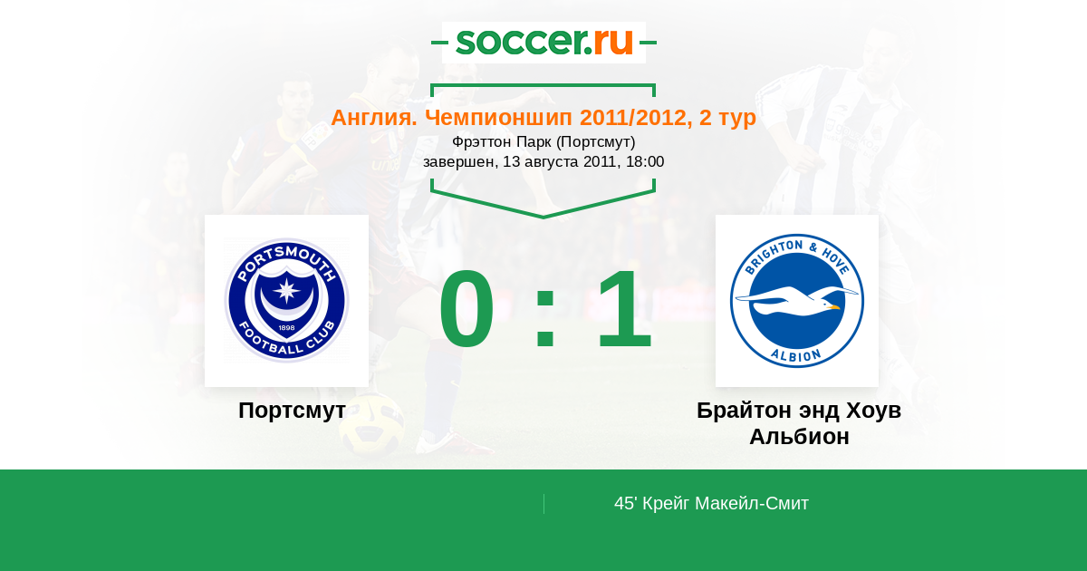 Протокол матча Портсмут против Брайтон энд Хоув Альбион