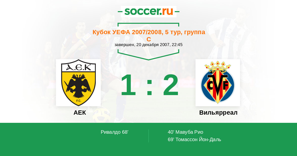 Протокол матча АЕК против Вильярреал