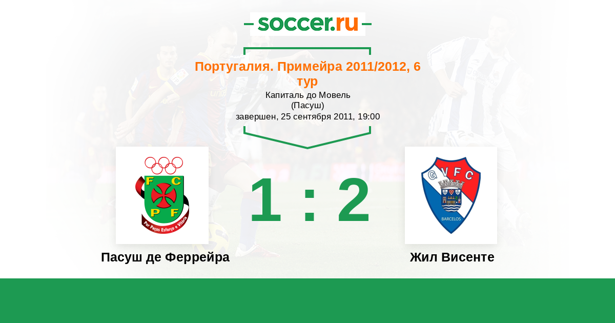 Португалия. Примейра 04.03.2012 Жил Висенте Логотип футбольный клуб Жил Висенте (Барселуш) 1:2 Логотип футбольный клуб Пасуш де Феррейра Пасуш де Феррейра