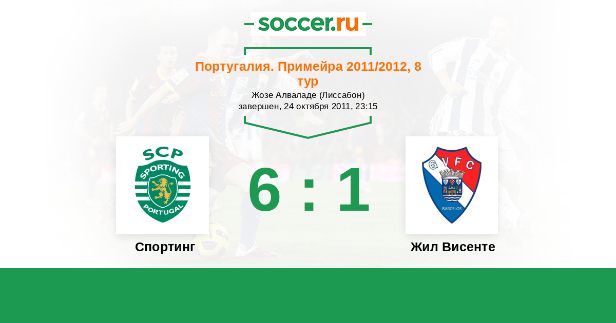 Португалия. Примейра 24.09.2012 Спортинг Логотип футбольный клуб Спортинг (Лиссабон) 2:1 Логотип футбольный клуб Жил Висенте (Барселуш) Жил Висенте