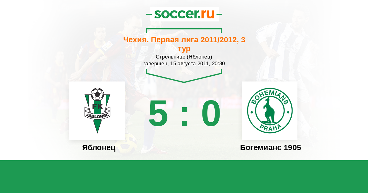 Чехия. Первая Лига 16.09.2007 Яблонец Логотип футбольный клуб Яблонец (Яблонец-над-Нисоу) 0:0 Логотип футбольный клуб Богемианс 1905 (Прага) Богемианс 1905