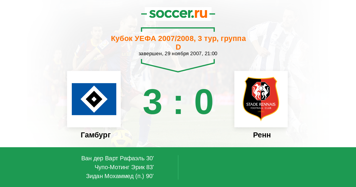 Протокол матча Гамбург против Ренн