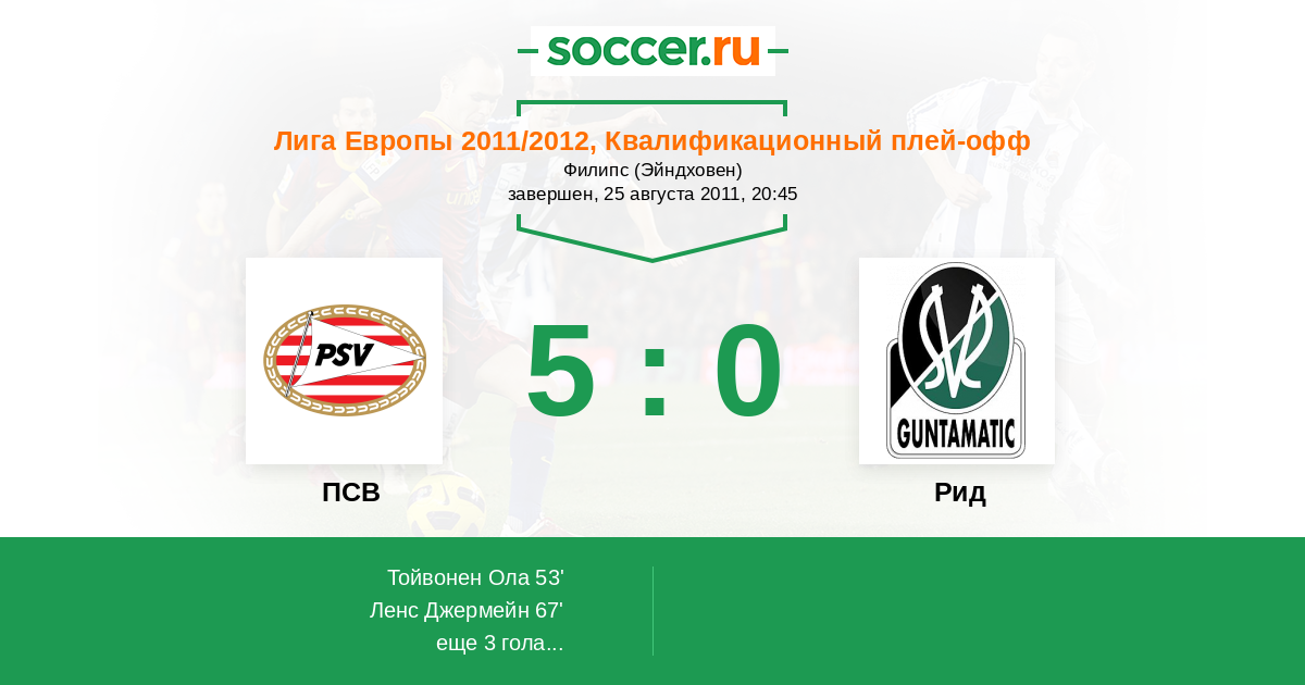 Протокол матча ПСВ против Рид