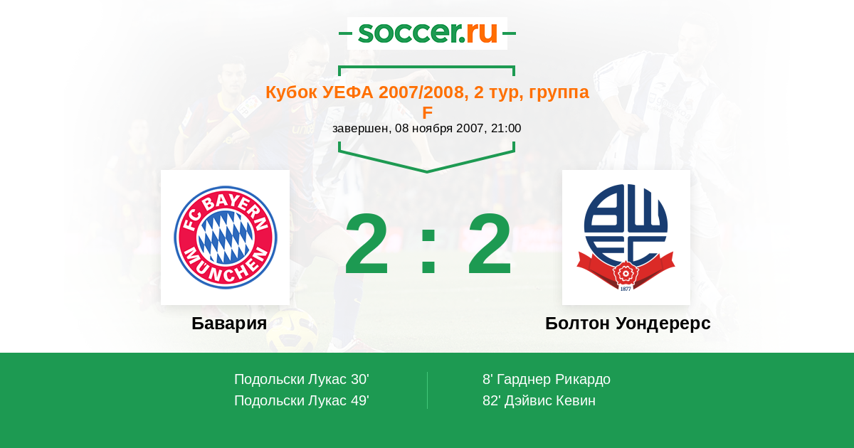 Протокол матча Бавария против Болтон Уондерерс
