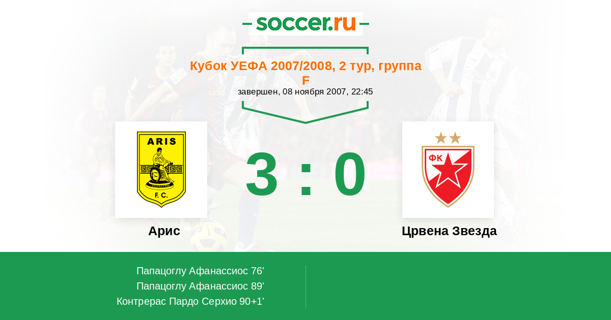 Протокол матча Арис против Црвена Звезда