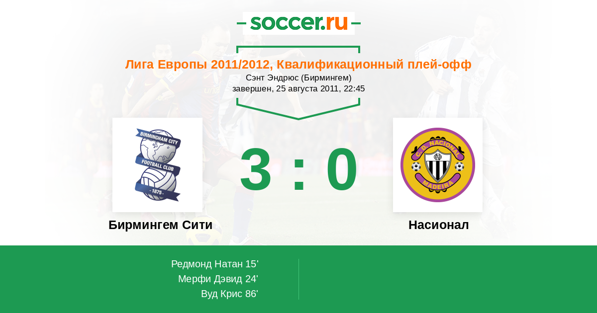 Протокол матча Бирмингем Сити против Насионал