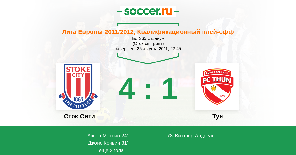 Протокол матча Сток Сити против Тун