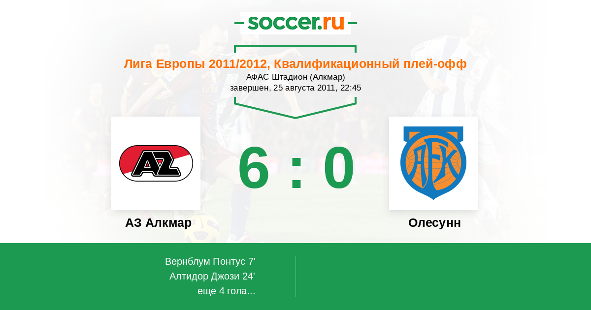 Протокол матча АЗ Алкмар против Олесунн