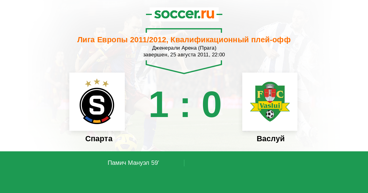 Протокол матча Спарта против Васлуй