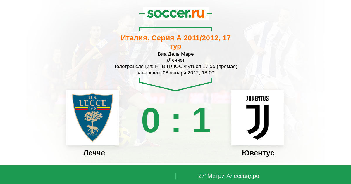 Протокол матча Лечче против Ювентус