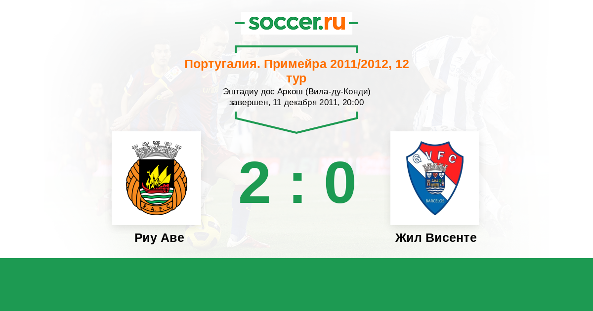 Португалия. Примейра 22.04.2012 Жил Висенте Логотип футбольный клуб Жил Висенте (Барселуш) 0:0 Логотип футбольный клуб Риу Аве (Вила-ду-Конди) Риу Аве