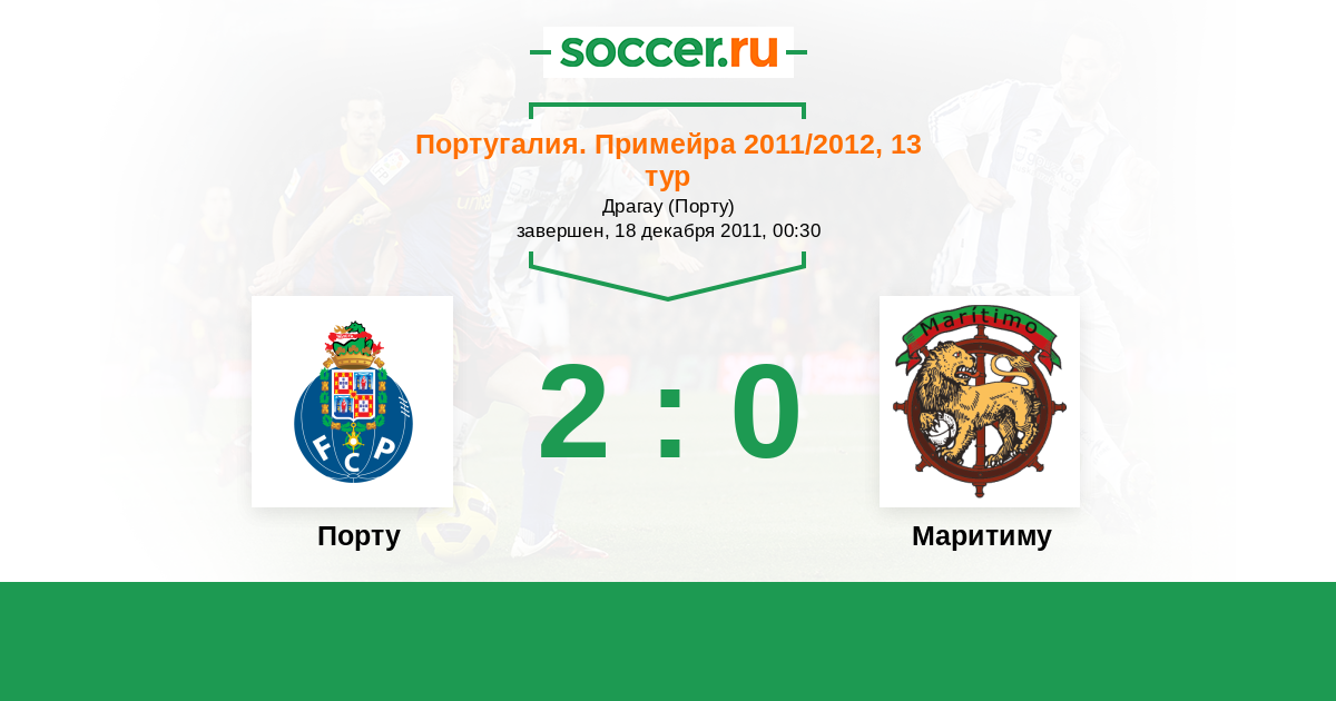 Португалия. Примейра 08.01.2011 Порту Логотип футбольный клуб Порту 4:1 Логотип футбольный клуб Маритиму (Фуншал) Маритиму