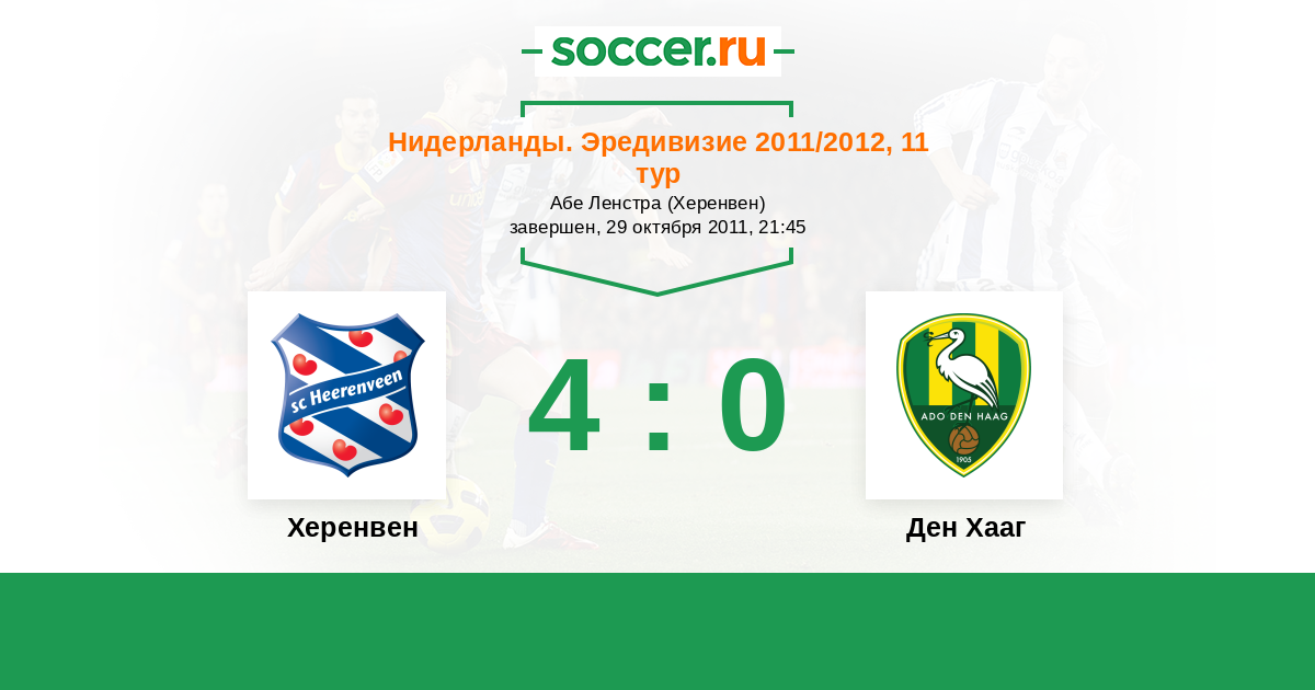 Нидерланды. Эредивизи 03.03.2012 Ден Хааг Логотип футбольный клуб Ден Хааг (Гаага) 0:0 Логотип футбольный клуб Херенвен Херенвен