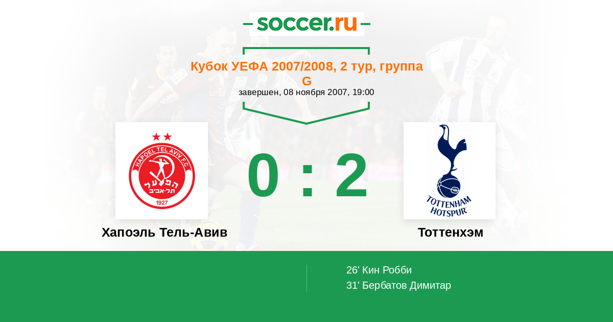 Протокол матча Хапоэль Тель-Авив против Тоттенхэм