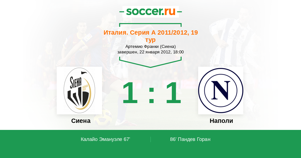 67' (1:0) Калайо Эмануэле (11) (Вергассола Симоне (8))