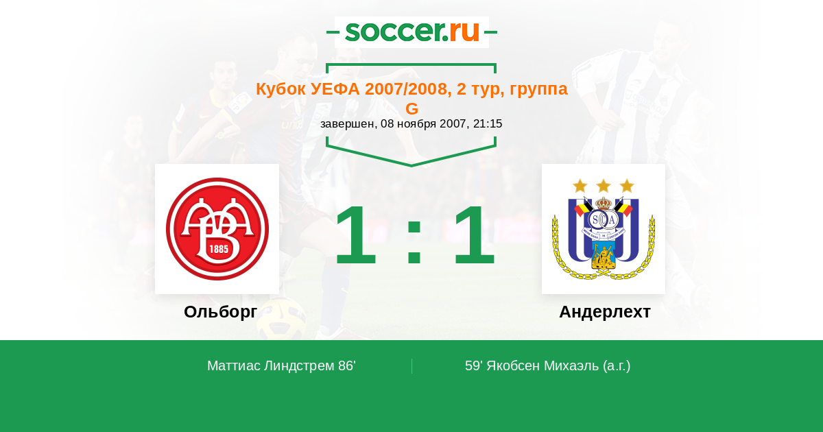 Протокол матча Ольборг против Андерлехт