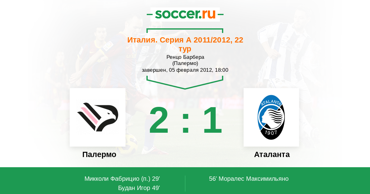 Протокол матча Палермо против Аталанта