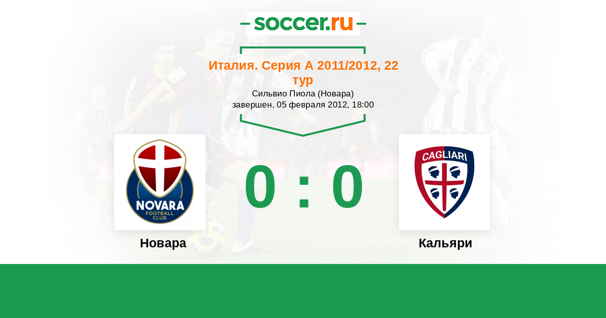Протокол матча Новара против Кальяри