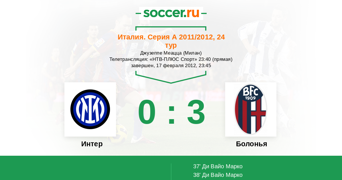 Протокол матча Интер против Болонья