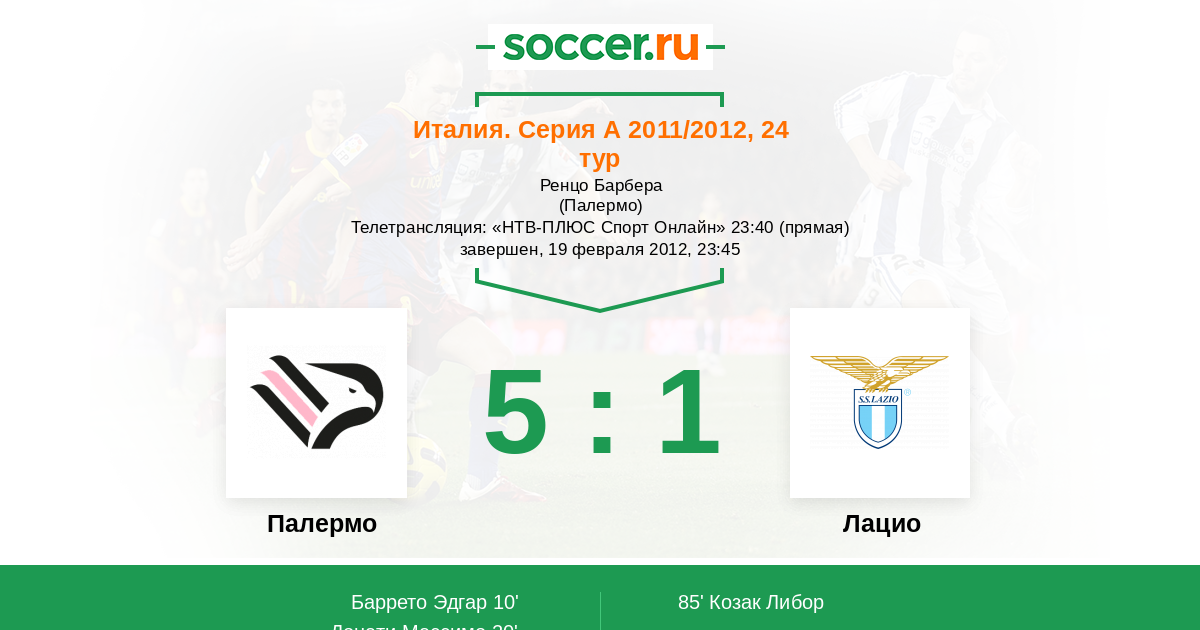 Протокол матча Палермо против Лацио