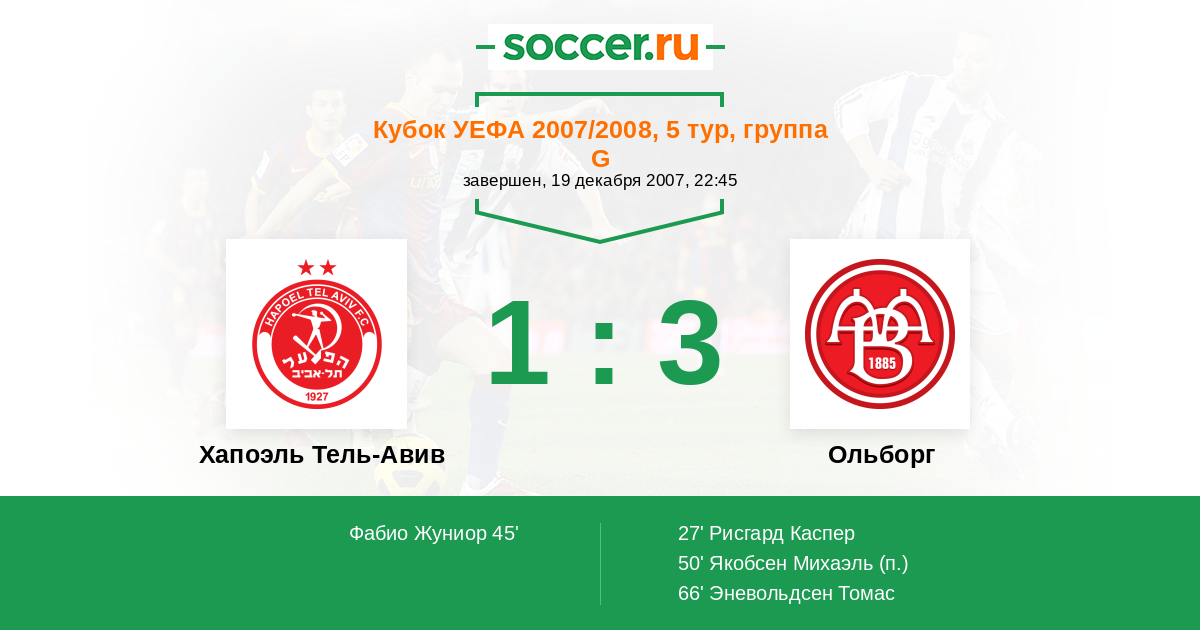 Протокол матча Хапоэль Тель-Авив против Ольборг