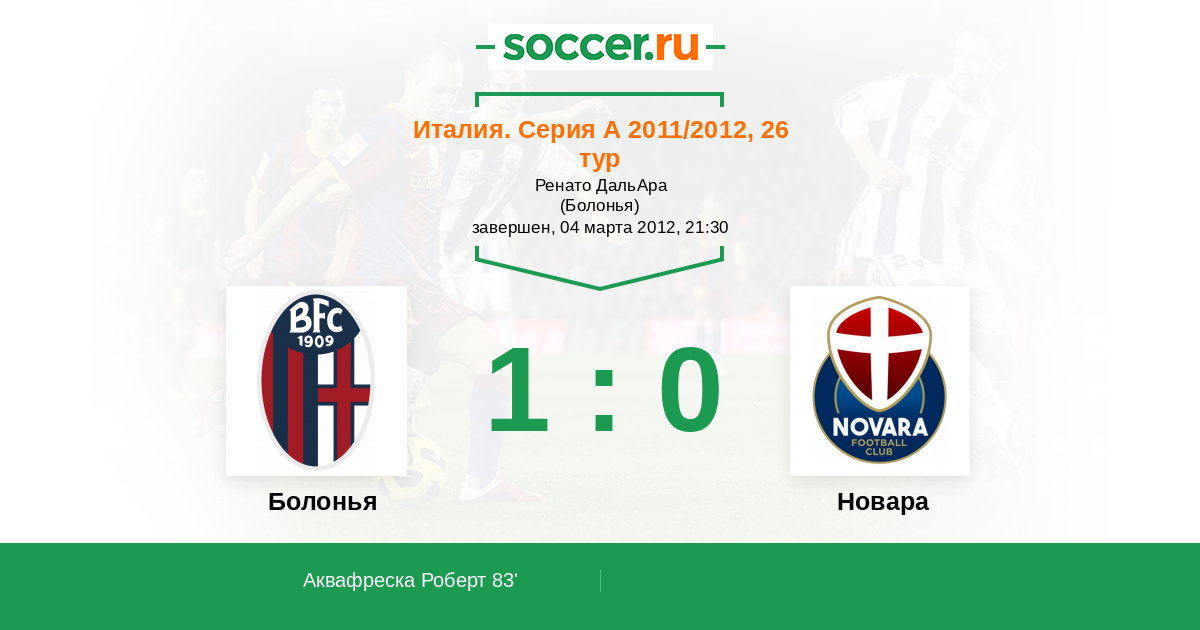 Протокол матча Болонья против Новара