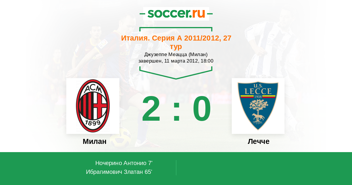 Протокол матча Милан против Лечче