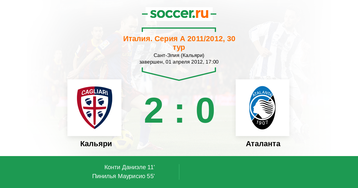 Протокол матча Кальяри против Аталанта
