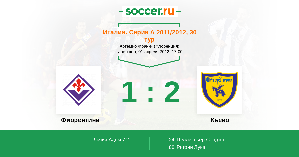Протокол матча Фиорентина против Кьево