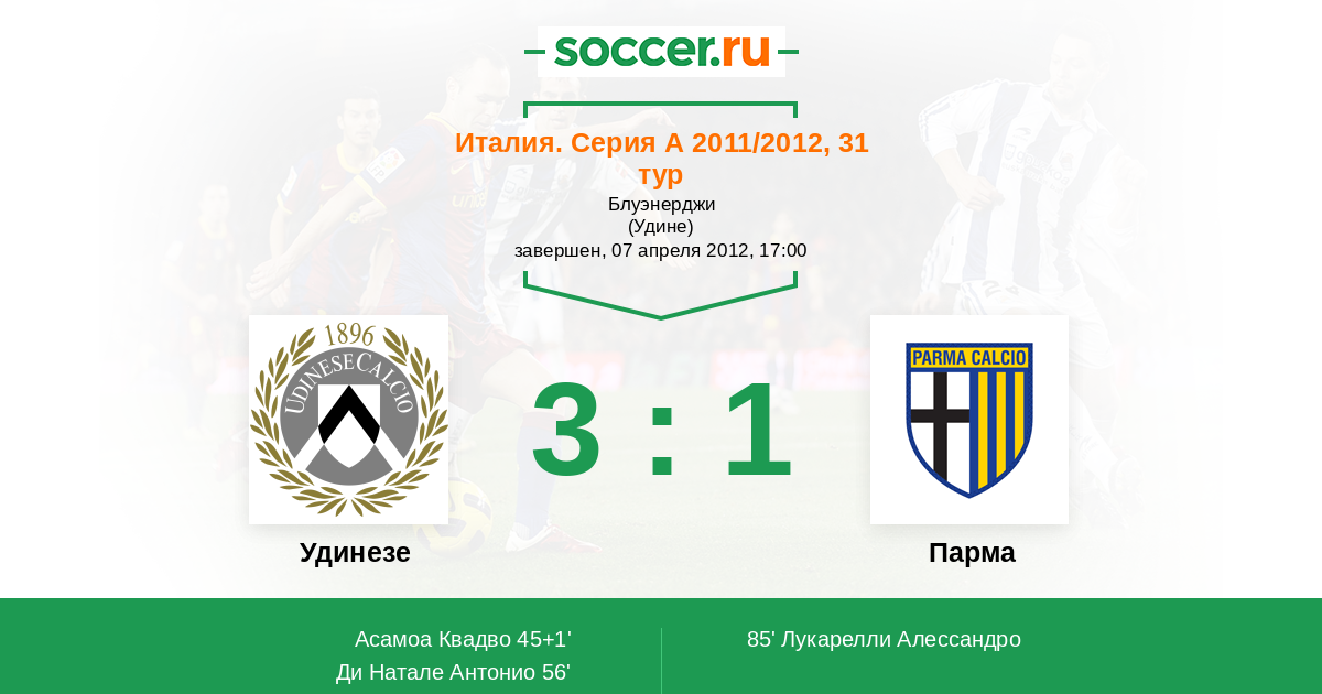 Протокол матча Удинезе против Парма
