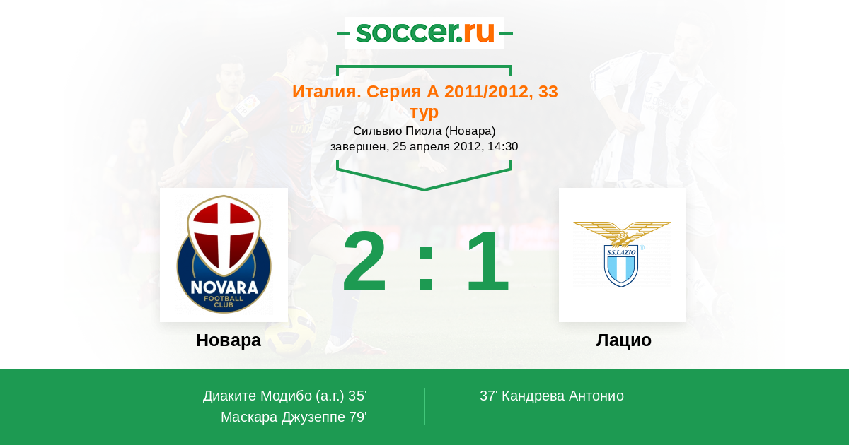 Протокол матча Новара против Лацио