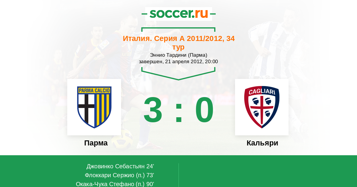 Протокол матча Парма против Кальяри
