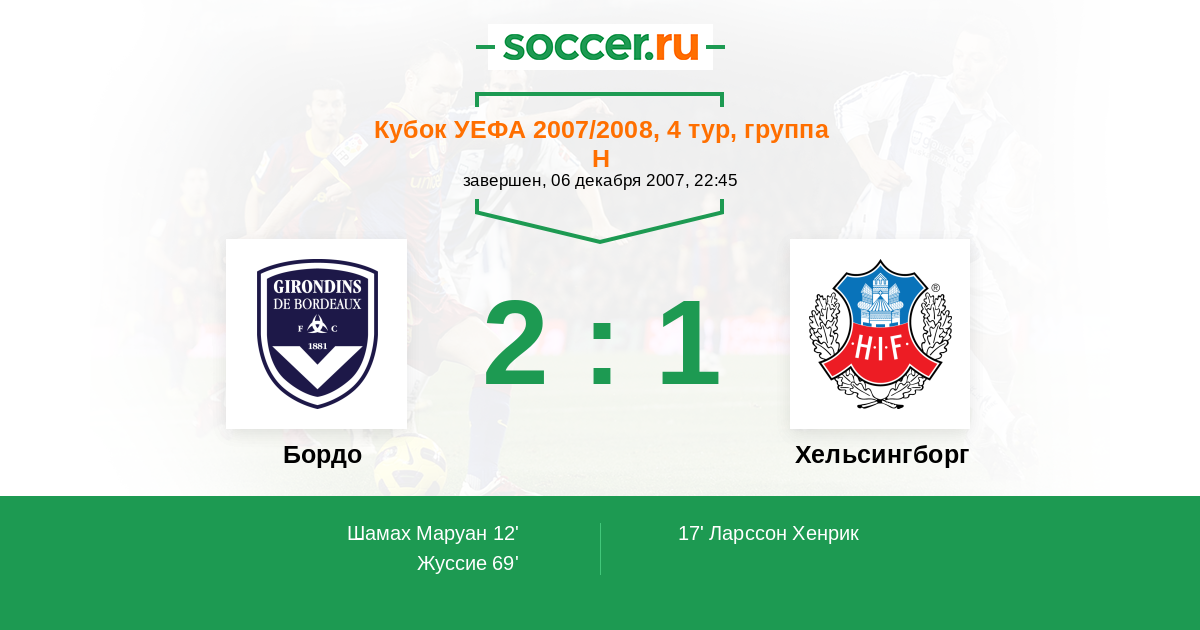 Протокол матча Бордо против Хельсингборг