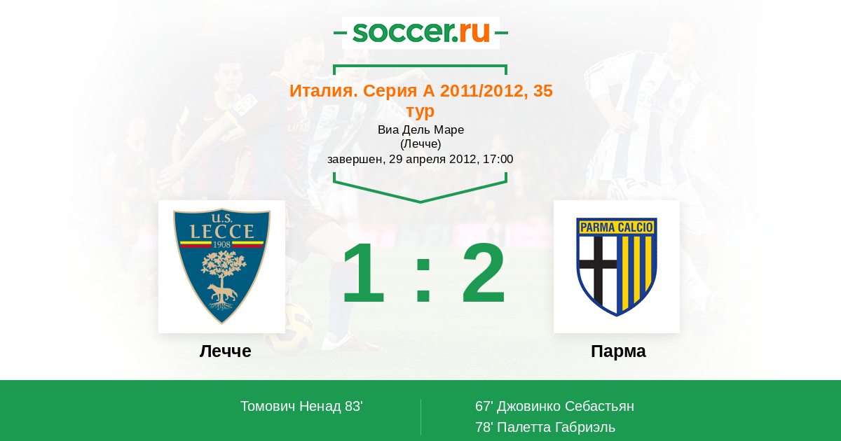 Протокол матча Лечче против Парма
