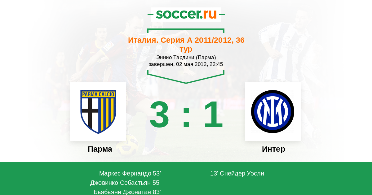 Протокол матча Парма против Интер