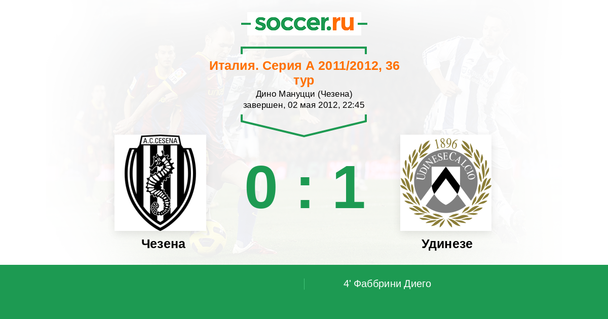 Протокол матча Чезена против Удинезе