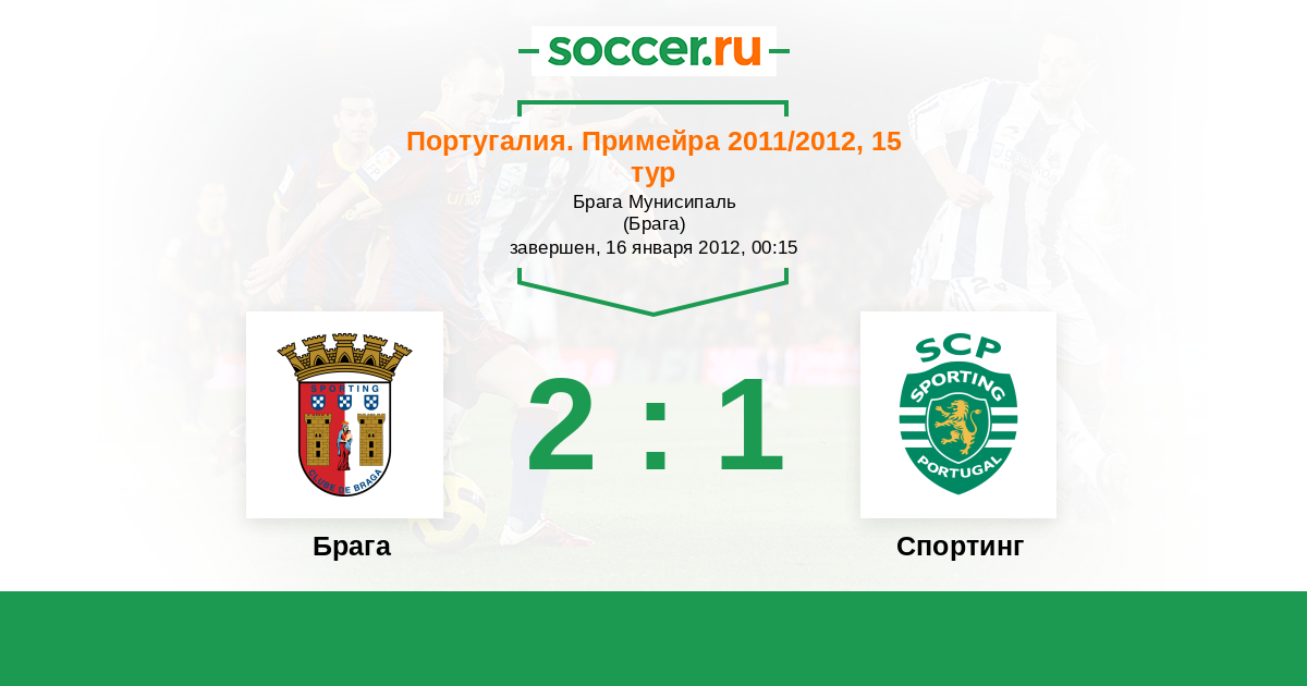 Португалия. Примейра 09.01.2011 Спортинг Логотип футбольный клуб Спортинг (Лиссабон) 2:1 Логотип футбольный клуб Брага Брага