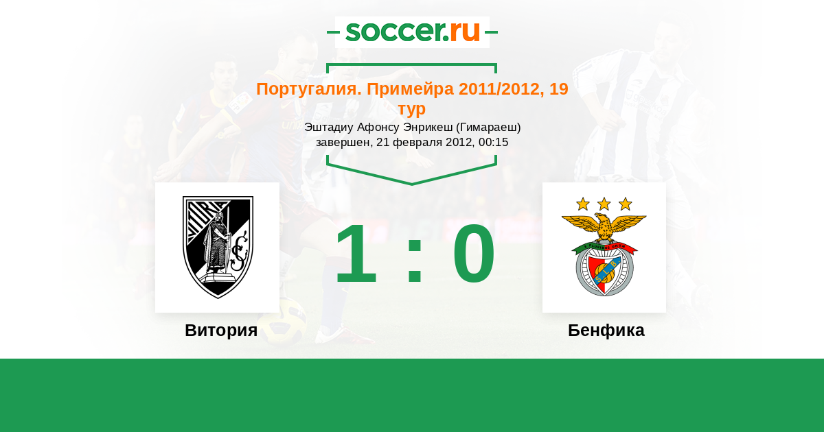 Португалия. Примейра 13.02.2011 Бенфика Логотип футбольный клуб Бенфика (Лиссабон) 3:0 Логотип футбольный клуб Витория (Гимараеш) Витория